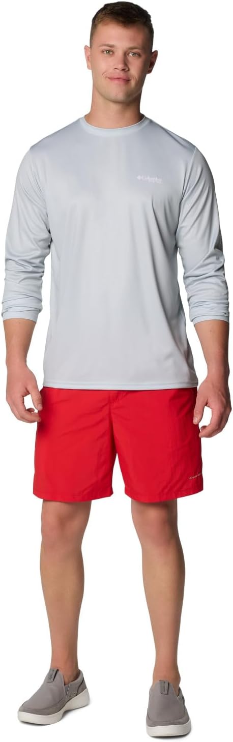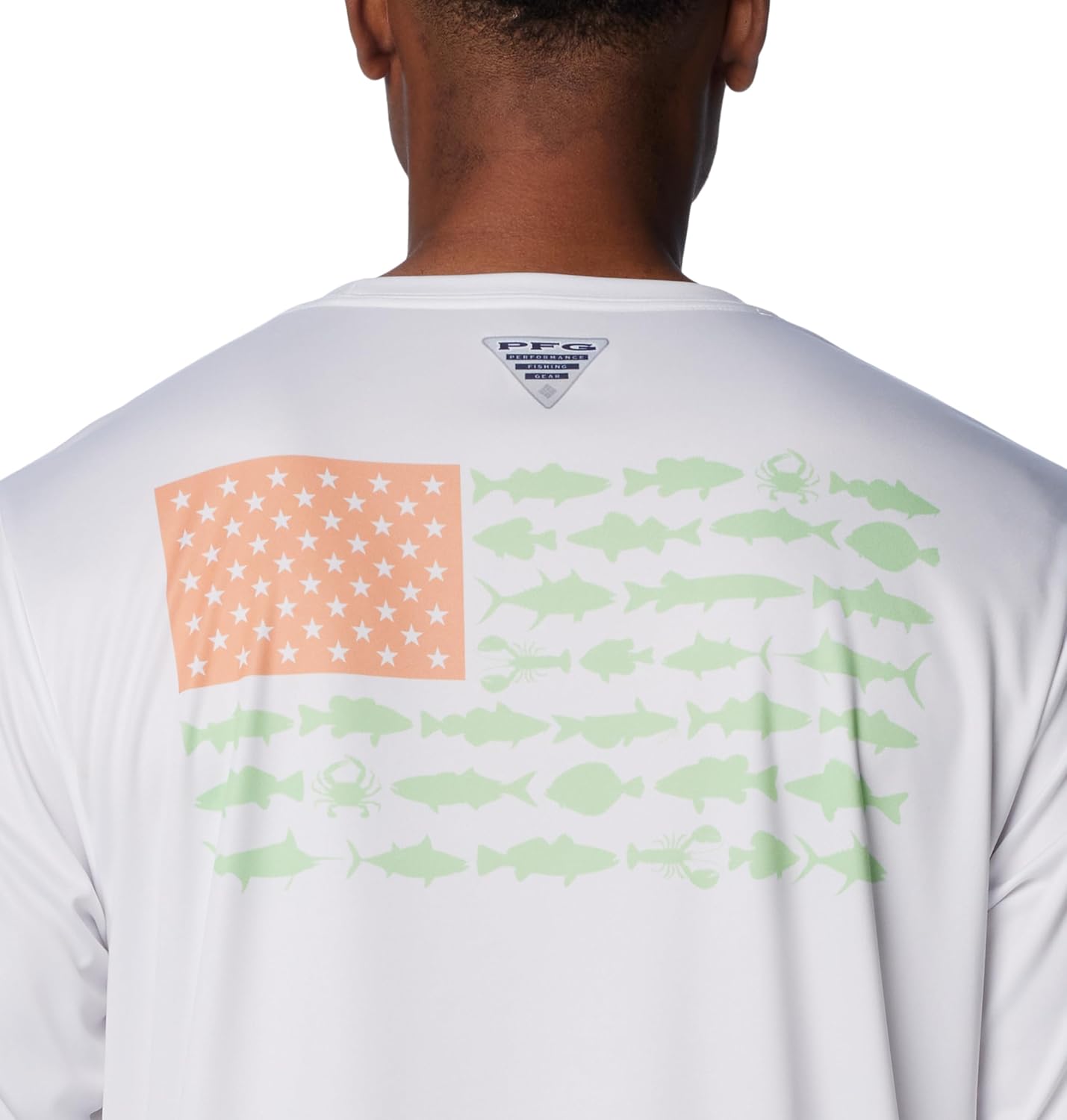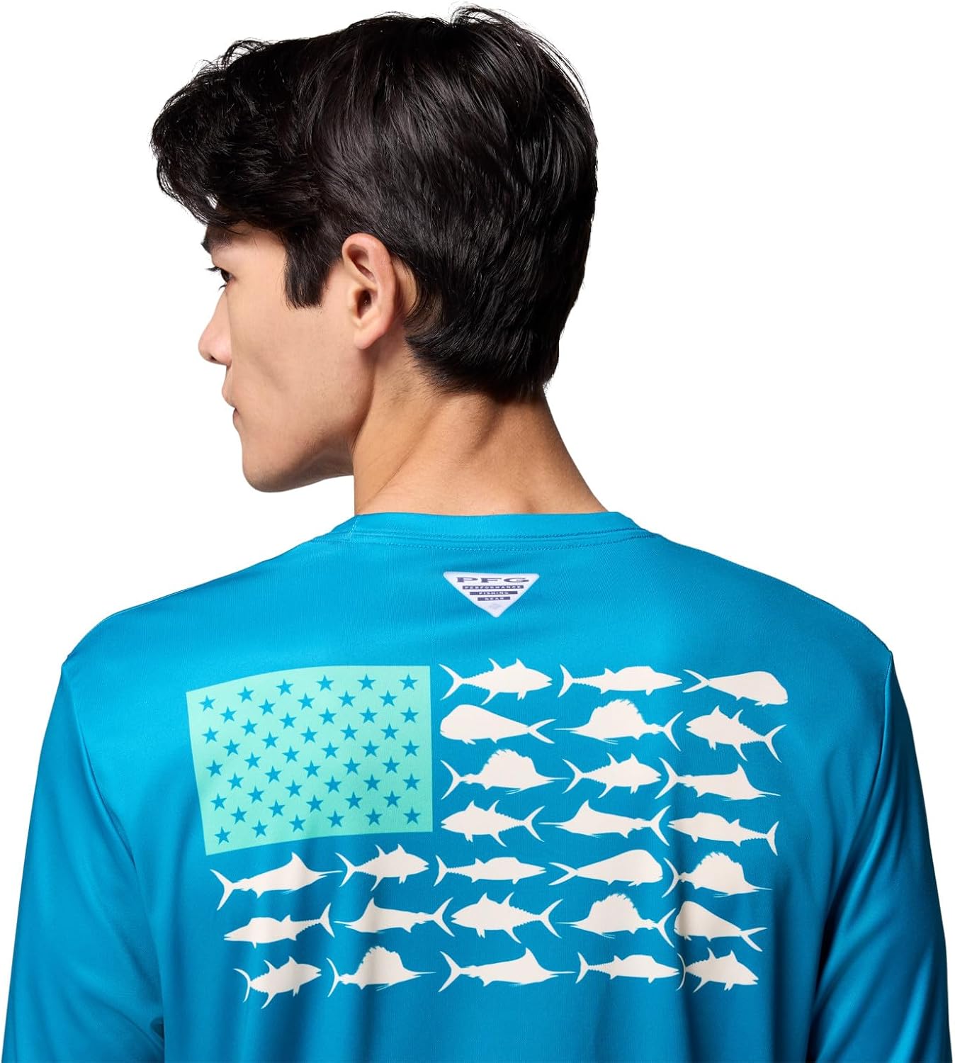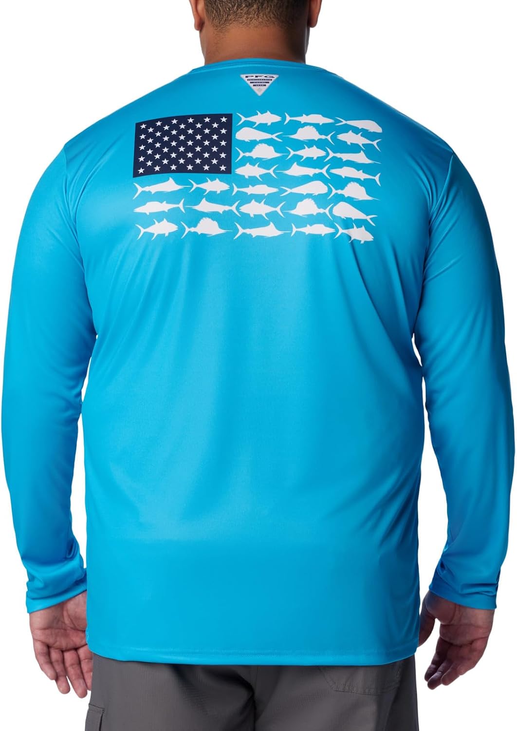 With our quick-drying, moisture wicking fabric, this UPF 50 rated shirt is designed to keep you protected, dry and comfortable all day. Designed in bright solid colors featuring your fishing addiction on the back with a bold and big fish flag. This technology loaded long sleeve Tee is necessity for any day out on the ocean, lake, or river. Made up of a combination of Columbia’s signature protection fabrics: UPF 50 tech works to block and shield you from harmful UVA and UVB sun rays known to cause skin damage, while the advanced wicking fabric works to pull perspiration and water away from the skin. Columbia offers this fishing ready shirt in multiple staple colors and sizes. Extended sizes available. Regular Fit. To ensure the size you choose is right, utilize our sizing chart and the following measurement instructions: For the sleeves, start at the center back of your neck and measure across the shoulder and down to the sleeve. If you come up with a partial number, round up to the next even number. For the chest, measure at the fullest part of the chest, under the armpits and over the shoulder blades, keeping the tape measure firm and level.