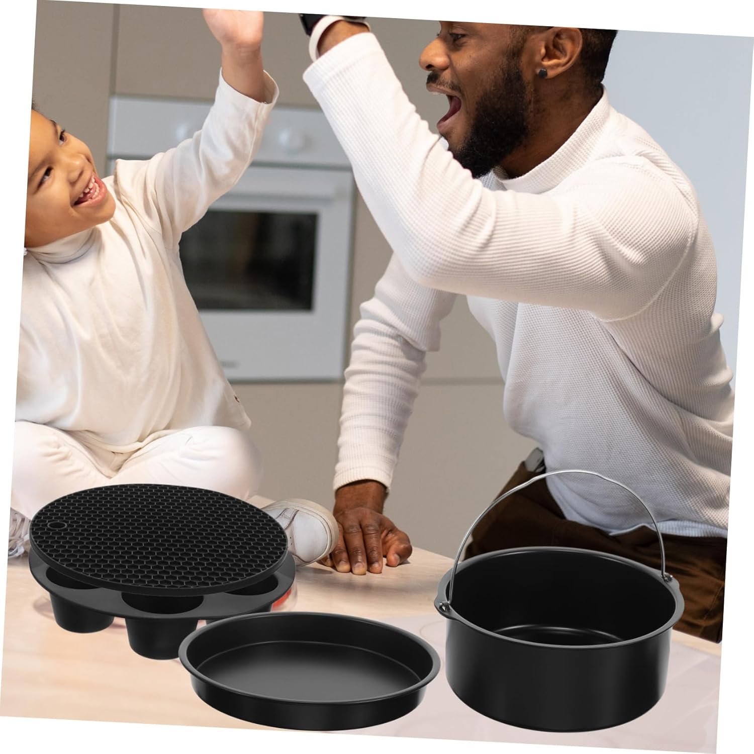Package Include 9 tools Features -Material: Stainless steel Cupcake Pan -Color: Assorted color Air Fryer Kit - These pans are made from food-grade material, allowing you to truly enjoy the cooking with the health advantages and versatility Frying Pan. - A great cooking tool for your kitchen for banana fritters, roasted tomato bruschetta, chicken kebabs with french fries, lamb kebabs with and hummus and so on Pizza Cupcake Pan. - They are are designed with non-stick coating, which makes them extremely easy to clean Air Frying Cooker. - They can be used for not only baking but also for soups, stews, and any foods with juices for Tools. - You can use this set to bake various types of cakes, pies, to cook juicy meat, fish, macaroni and cheese, omelets, etc Air Fryer Accessories.Goods DescriptionBaking Kit These are practical air fryer accessories, which are specially designed for food frying.Air Fryer Accessories Especially, cake and pizza pan using materials, there is a protective layer on the air fryer accessories surface, don't use hard things to rub, your cake will not have black paint