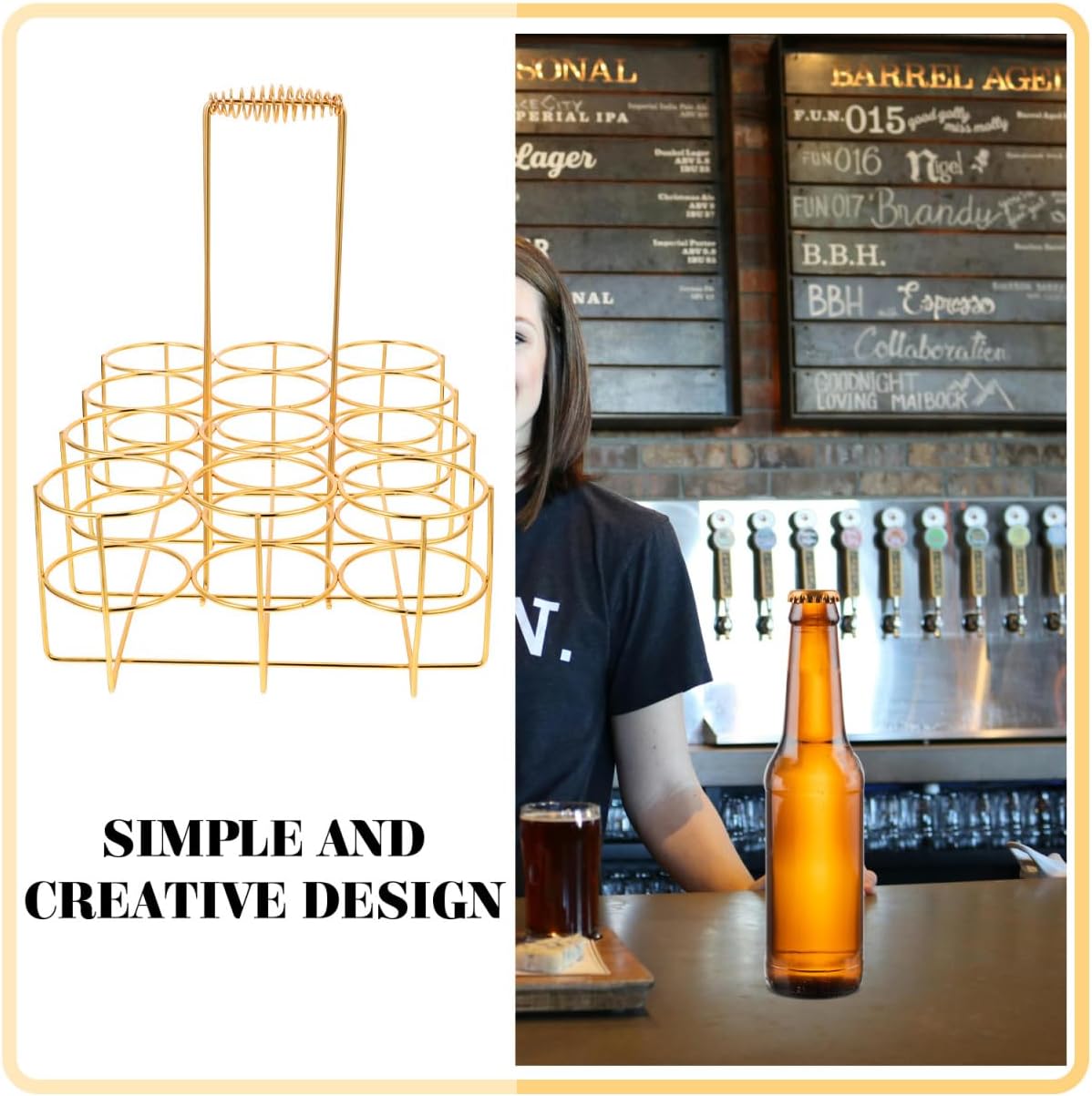 Description Beer Storage Rack Basket Simple Beer Basket for Storage. Features- Color: Golden.- Material: Iron.- Size: Approx 29. 00X22. 00X32. 00cm. Package Including 1 x beer basket